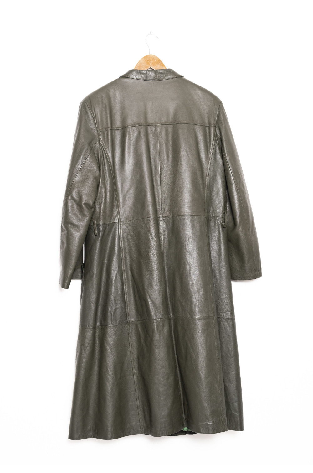 Abrigo cuero verde largo